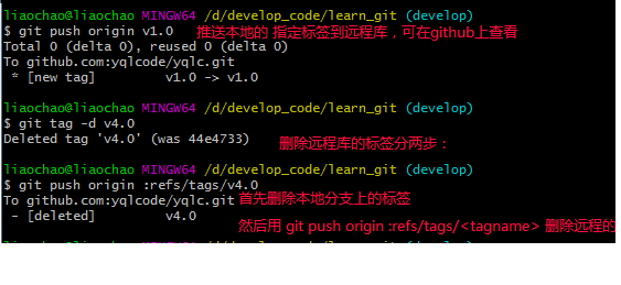 然后,我们建立本地仓库和远程仓库之间的关联,把代码提交到远程仓库上去(过程中遇到的坑直接写在了图片中),(如果要删除已有的github远程库:git remote rm <远程库的名字(比如origin)>):