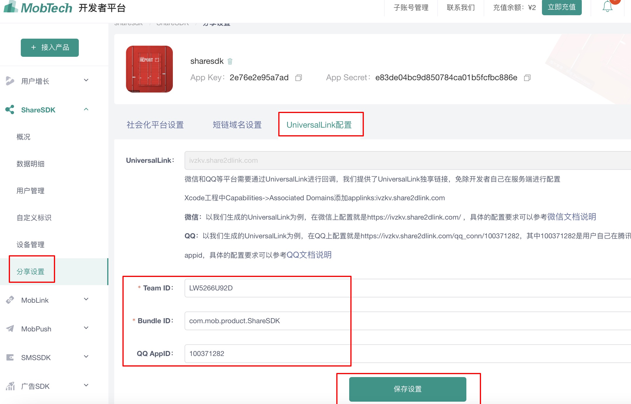 填写好这些信息保存之后,就可以将生成的Universal Link用于微信开放平台上,微信初始化里,项目里这3个地方进行配置