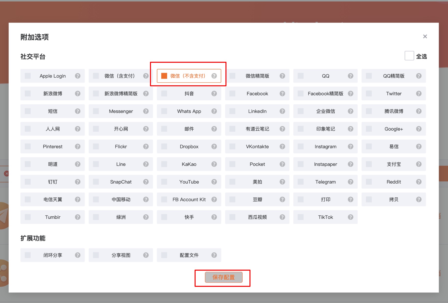 1.3 勾选自己需要的平台,例如微信平台,然后自己写UI,只需要勾选 如下图: