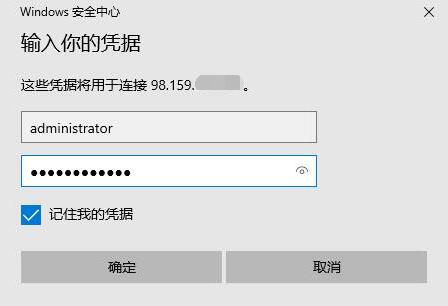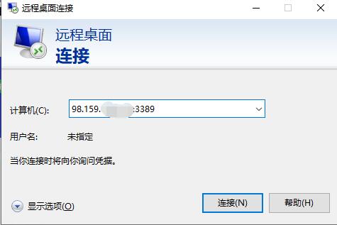 获取远程登录信息后,我们在本地电脑的Windows附件里找到远程桌面连接,输入云服务器的IP+端口(如98.159.XXX.XXX:3389),点击连接,在弹出的窗口中输入云服务器的用户名和密码,点击确定,即可远程连接上这台云服务器。