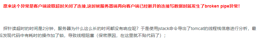 3.还有最后一个问题就是,后台会经常报“断开的管道”这个异常,实在是不经常见到的错误,所以在网上搜了一些的答案。