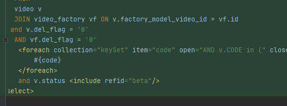 于是作了一些的操作,在for循环外面将所有数据查询出来,sql里面用in foreach标签,这2个sql作了联表查询,
