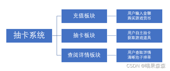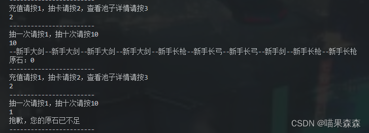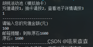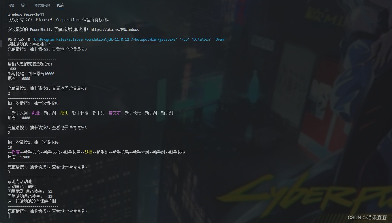 通过java语言,编写了一个氪金游戏的抽卡系统,具备充值,抽卡,查看卡池详情的功能