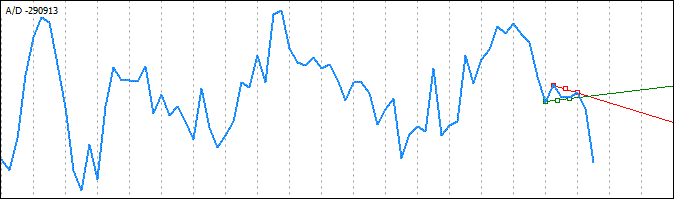 在一般情况下,此函数将找到 A/D 图表中绘制的趋势线与指标本身的线条之间的交点,返回表示相交方向 - 向上或向下- 的值,并在价格图表中设置信号指示符号(向上/向下箭头,取决于相交方向)用于进行说明。
