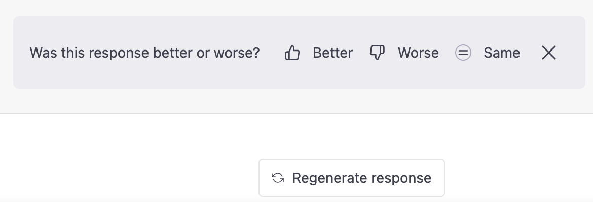 此外,在你使用"Regenerate"功能时,ChatGPT 也有可能会给我们额外的反馈选择: