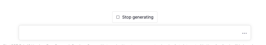 我们使用ChatGPT的时候会发现,它在回答问题的时候不是一次性将所有的答案直接显示在页面上,而是像我们打字说话一样,一个字一个字的逐渐将答案展现出来,这样就会出现一个问题,当我们觉得已经生成了满意的回答或者不希望继续等待ChatGPT继续生成回答时,该怎么办呢?ChatGPT提供了 Stop generating 这个按钮,可以让我们手动停止生成回答。当ChatGPT正在输出回答的时候,他就会出现在问题输入框的上面。