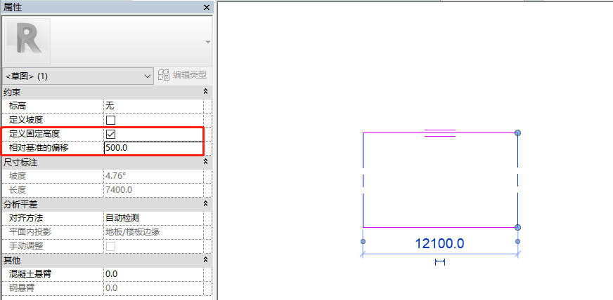 选择右边线 - 勾选“定义固定高度” - “相对基准的偏移”值设为500