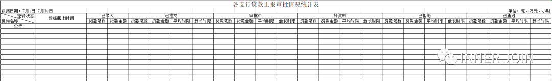 为加强贷款营销的过程管控,监测客户授信过程中各阶段的效能与转化,定位痛点堵点问题,切实促进业务增长与提升客户体验度,特制订《各支行贷款上报审批情况统计表》。