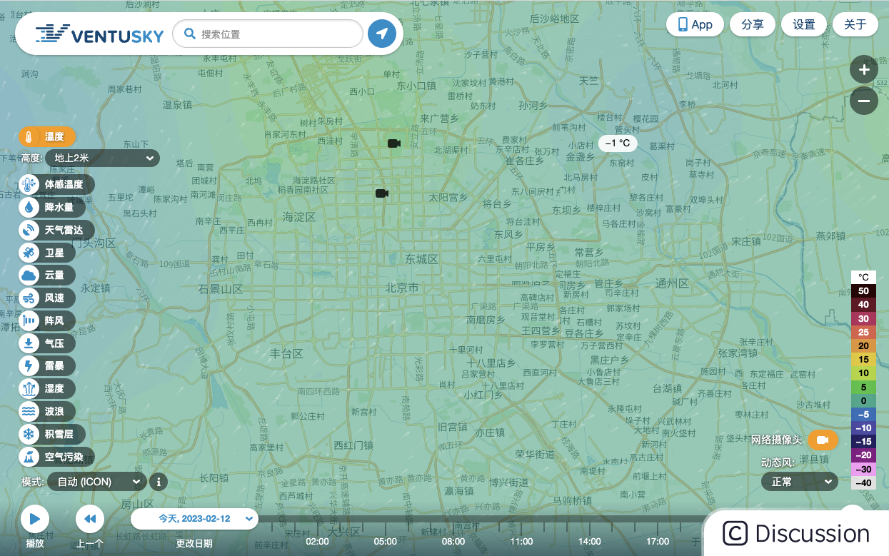 2、ventusky:一个查看天气详情的网站,提供的功能非常全,界面做的也很漂亮。