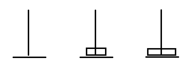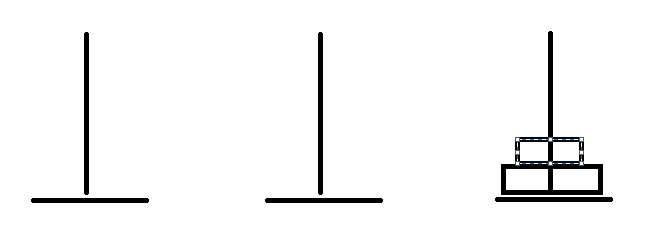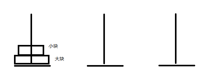 初始状态下两块圆盘,要把这两个圆盘按照当前的大小顺序放在最后一个柱子里,一次只能挪一块,且大块不能放在小块上面