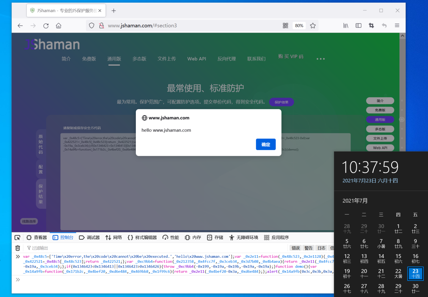 然后就是测试运行了,为了方便,直接打开浏览器的开发者工具,在“控制台”中输入并运行代码:
