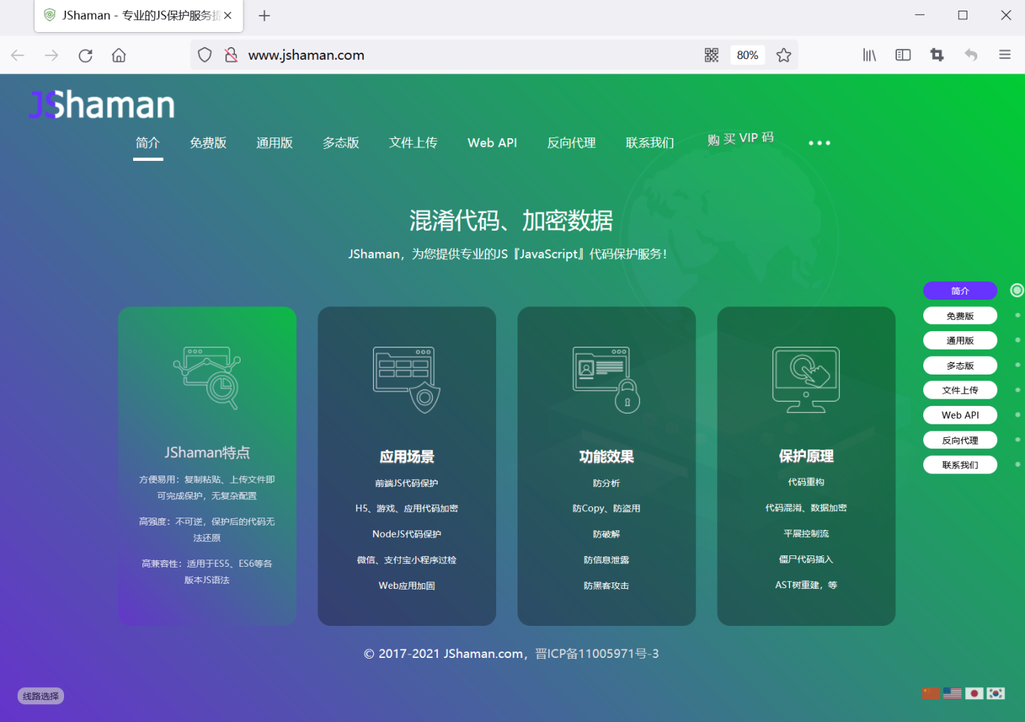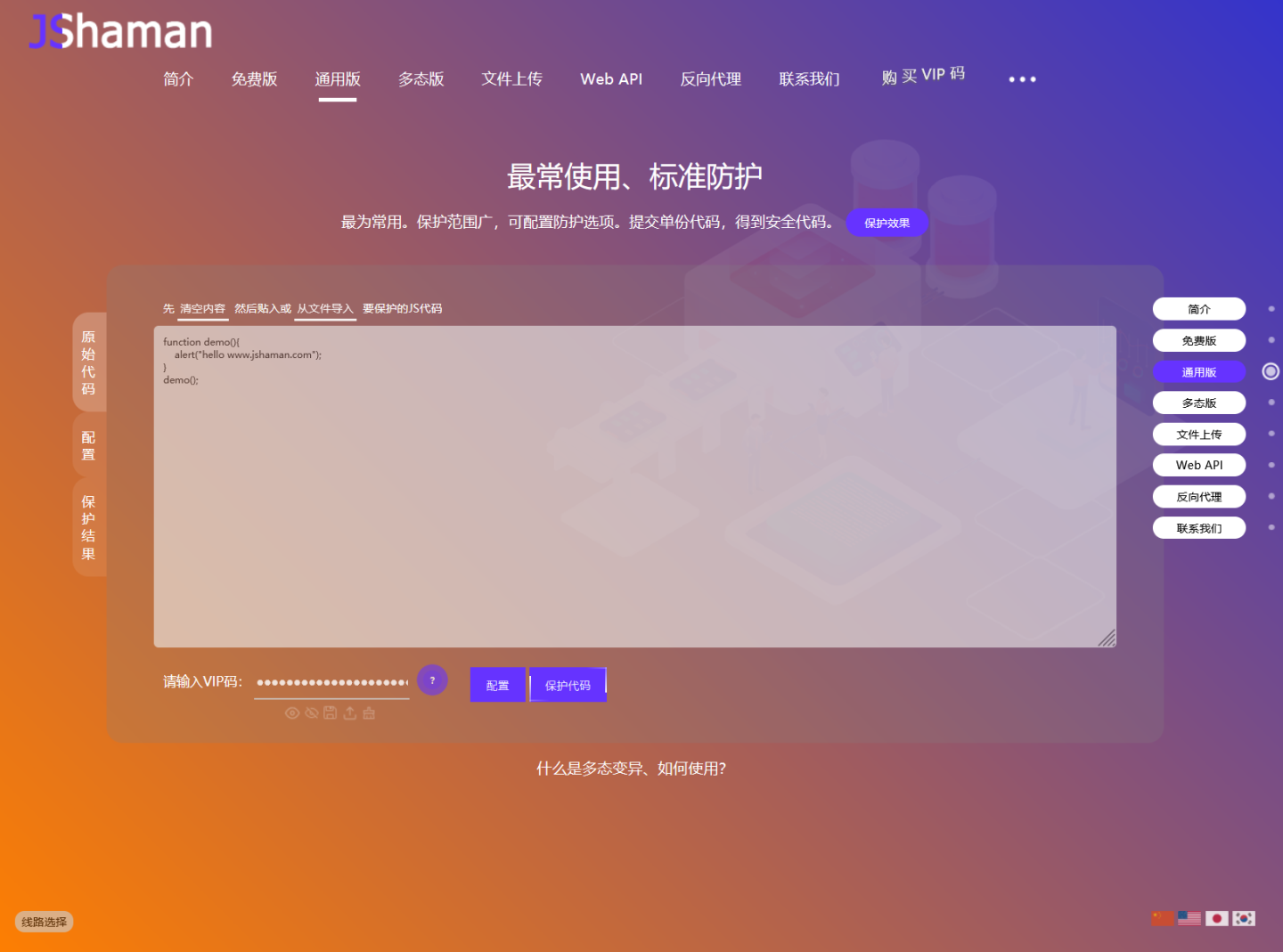 未体验功能之前,先看到了右下角几个国旗图标,JShaman这个平台竟然是国际化的,除了国内,在欧美、日本、韩国等地也在运营。一个字:厉害!