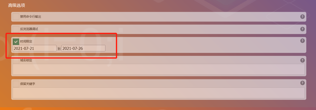勾选该功能,并设定时间范围:2021-07-21到2021-07-26,也就是让代码在这段时间可执行。