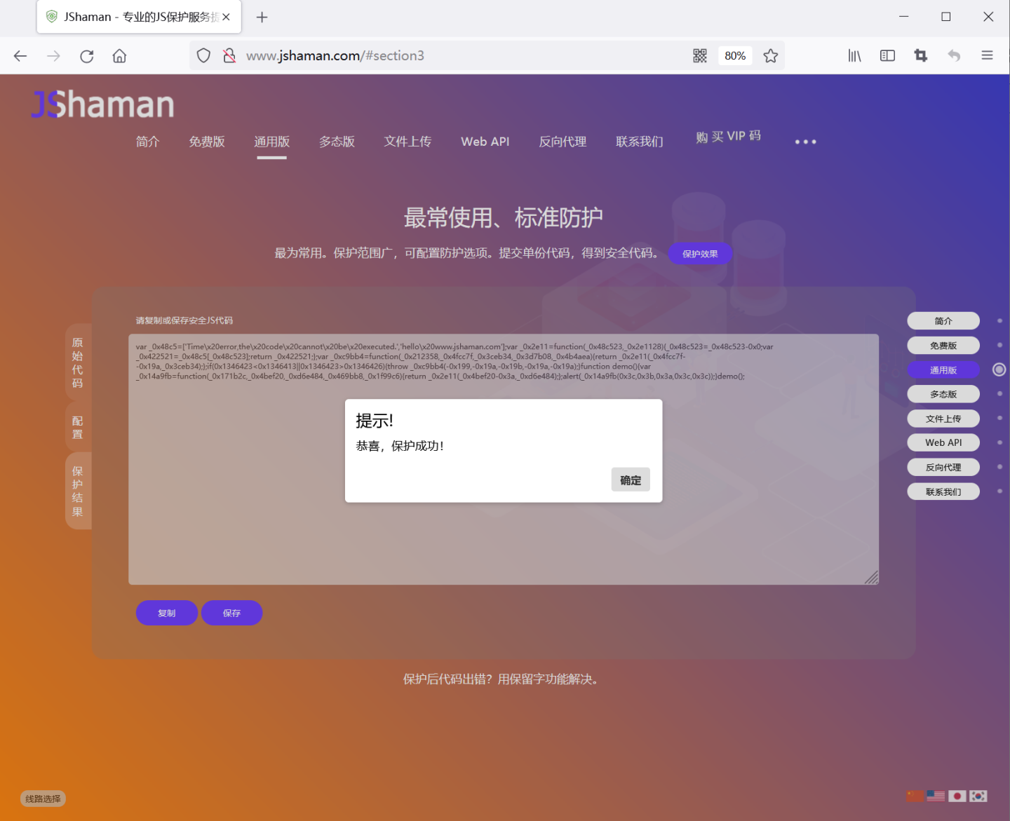 配置好后,返回“原始代码”界面,直接保护平台提供的默认代码:
