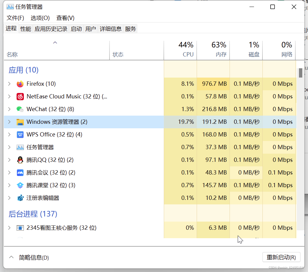 4:打开任务管理器,重启Windows资源管理器