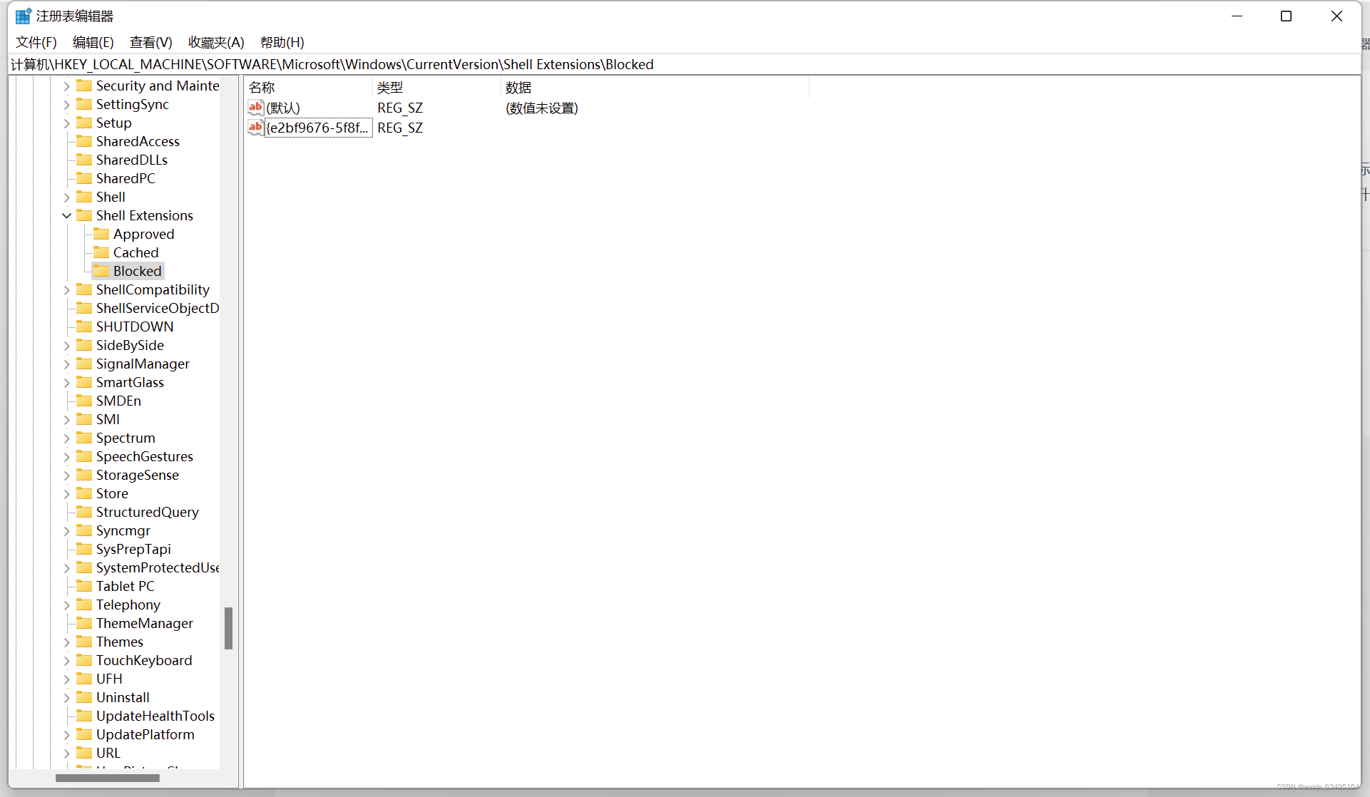 计算机\HKEY_LOCAL_MACHINE\SOFTWARE\Microsoft\Windows\CurrentVersion\Shell Extensions\Blocked