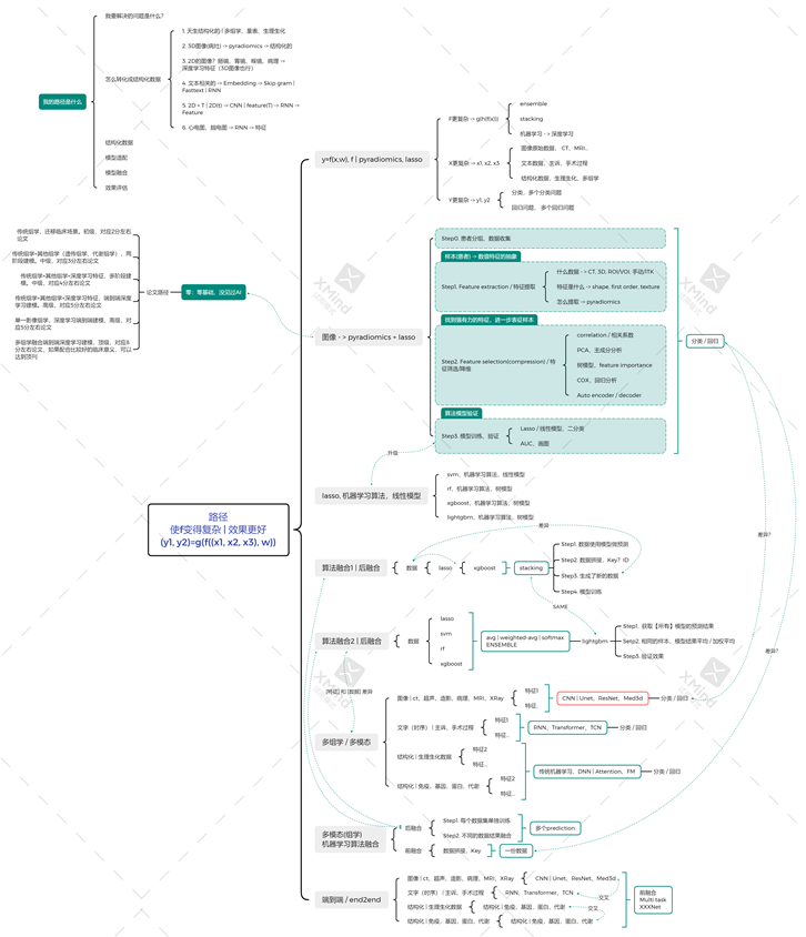 3. 传统组学+其他组学+深度学习特征,多阶段建模。中级,对应4分左右论文。