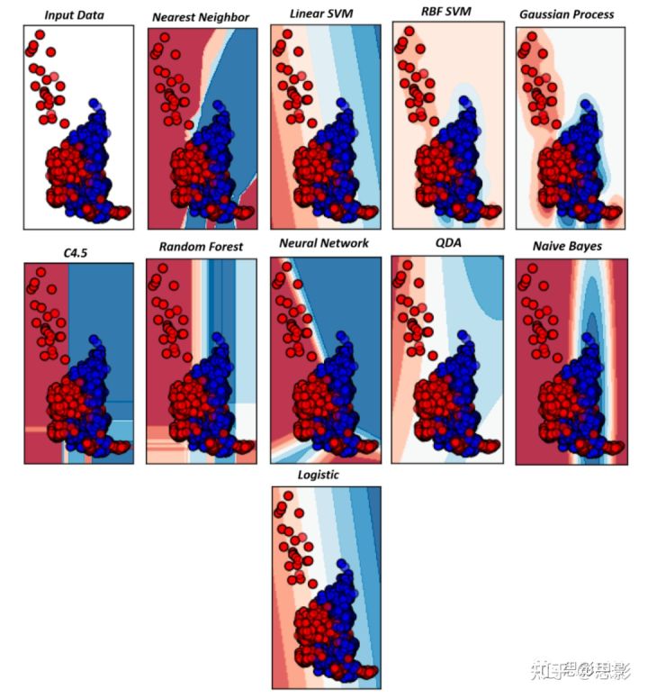 我们对10种不同的分类器进行了测试,这些分类器选自最常用的机器学习算法,通常用于分类任务。
