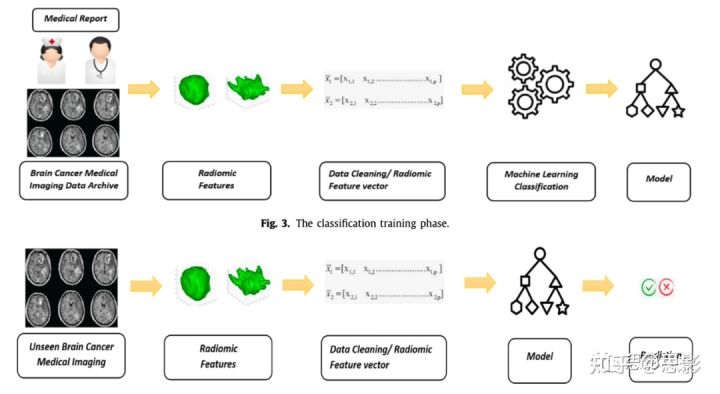 本研究中考虑的分类器是受监督的:即,我们输入机器学习算法,其中包含一组由MRI实例样本(即,图3中的脑癌医学成像数据档案)和一个标签(即,i、II、III或IV),每个MRI标签由具有脑癌等级的医学报告(即,图3中的医学报告)提供。