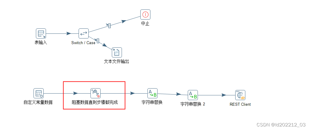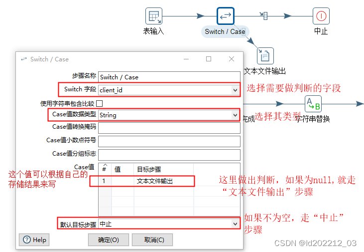 加入kettle组件--Switch / Case。Switch / Case用于进行条件判断。