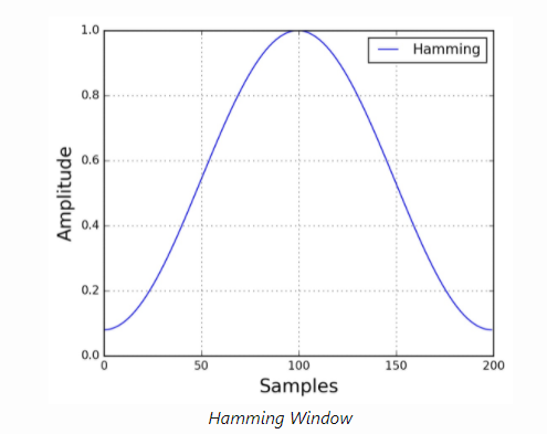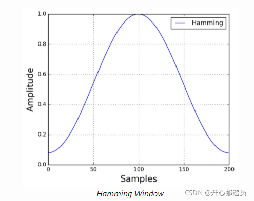 目的:消除各个帧两端可能会造成的信号不连续性(即谱泄露 spectral leakage)。