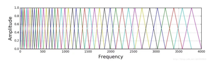 由于人耳对不同频率的敏感程度不同,且成非线性关系,因此我们将频谱按人耳敏感程度分为多个Mel滤波器组。