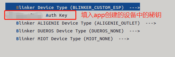 如下图所示配置blinker,AUth Key 填入app创建的设备中的秘钥