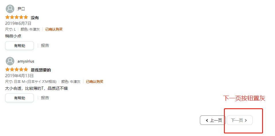 4)采集数量大于实际评论数量,下一页按钮置灰,直接退出循环