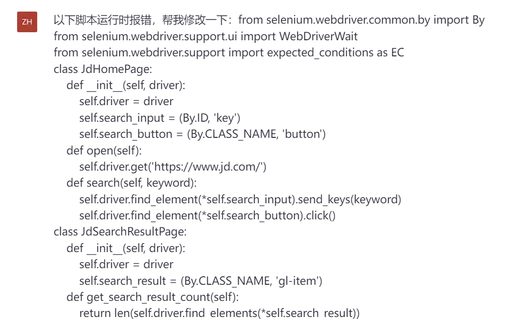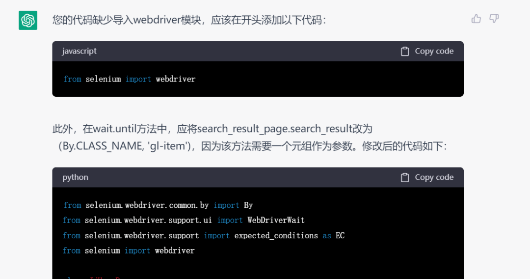 还可以让ChatGPT对已经编写的自动化脚本查错并纠正,是不是再也不用担心代码报错了~