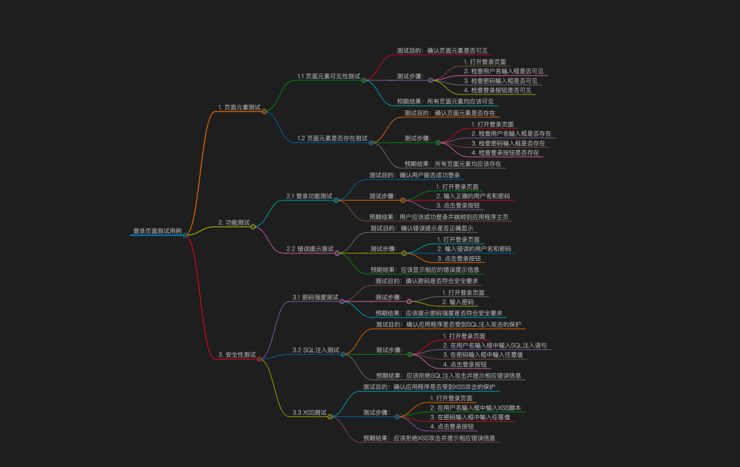 由导出的思维导图可以看出,ChatGPT生成的测试点非常全面,涵盖了多个方面的测试需求。通过应用到实际业务中,可能从中发现一些原本没有想到的测试点和测试用例,查漏补缺,进一步提高测试的完整性和准确度。
