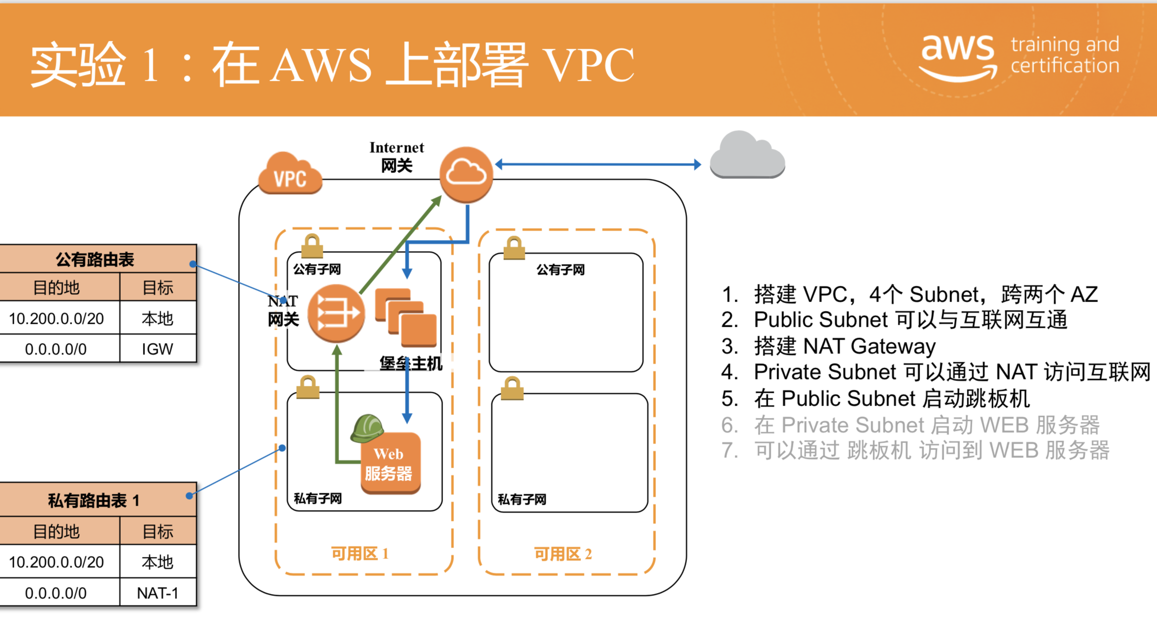 创建两个EC2实例,一个作为堡垒机,一个作为web服务。堡垒机放在公有子网,web服务在私有子网。