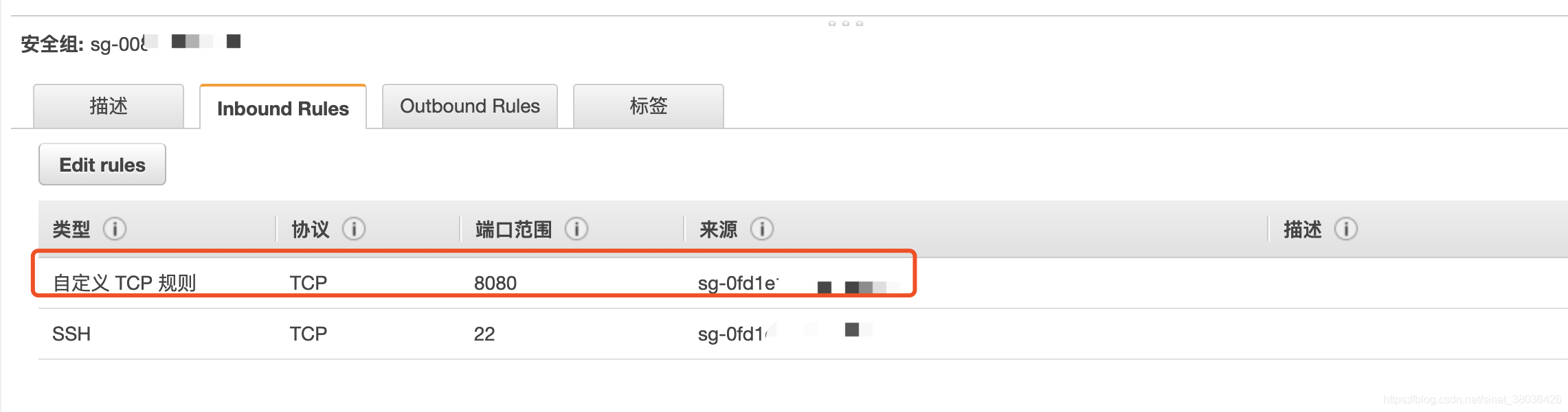 在对8080端口做限制,需要在web服务的安全组中加入如下配置: