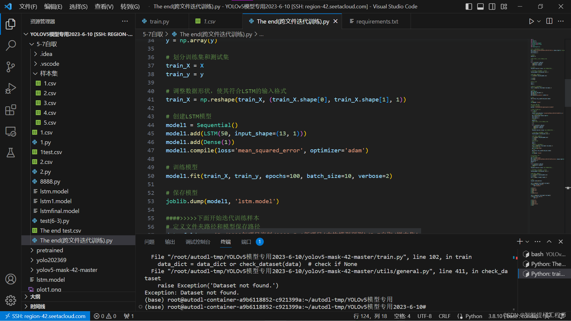解答:这玩意配环境,把导出的requiresments文件放在目录下面,然后运行你的代码,或者自己慢慢装也行,然后记得,在虚拟机里面跑代码,所有文件定位都要用绝对路径,不能直接train.py!