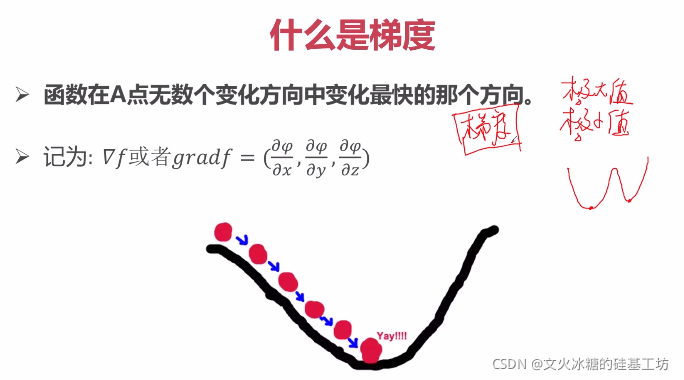 (2)梯度是向量,是由各个维度上的偏导数组成一个向量。