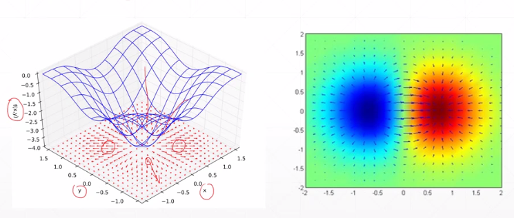 - 梯度有方向,所有维度方向的向量相加后的方向。