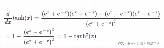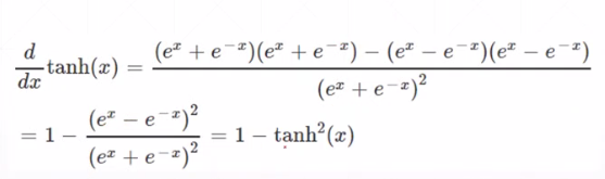 可以通过计算某个点X在原函数的正向传播值(激活函数),直接得到在某个点处的导数值 = 1 - f(x)^2,推导过程如下: