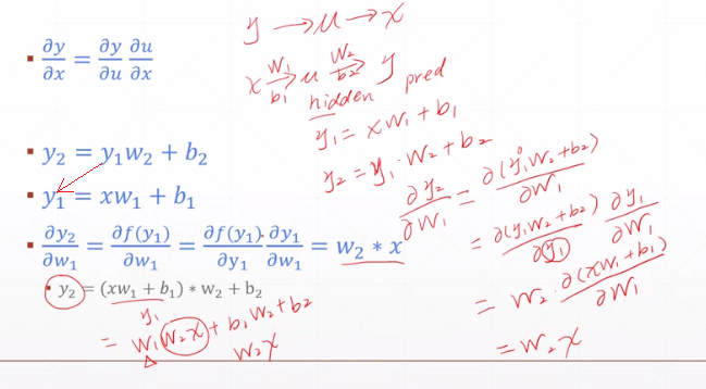 W和B对y_loss求偏导数,可以根据原函数的数值直接获得的: