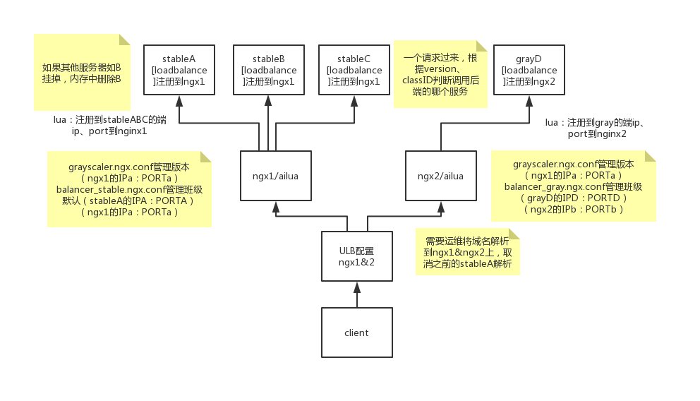 - 流量入口nginx配置,用来接收客户端请求的入口,也是灰度策略的入口,可以部署多个机器做流量负载均衡