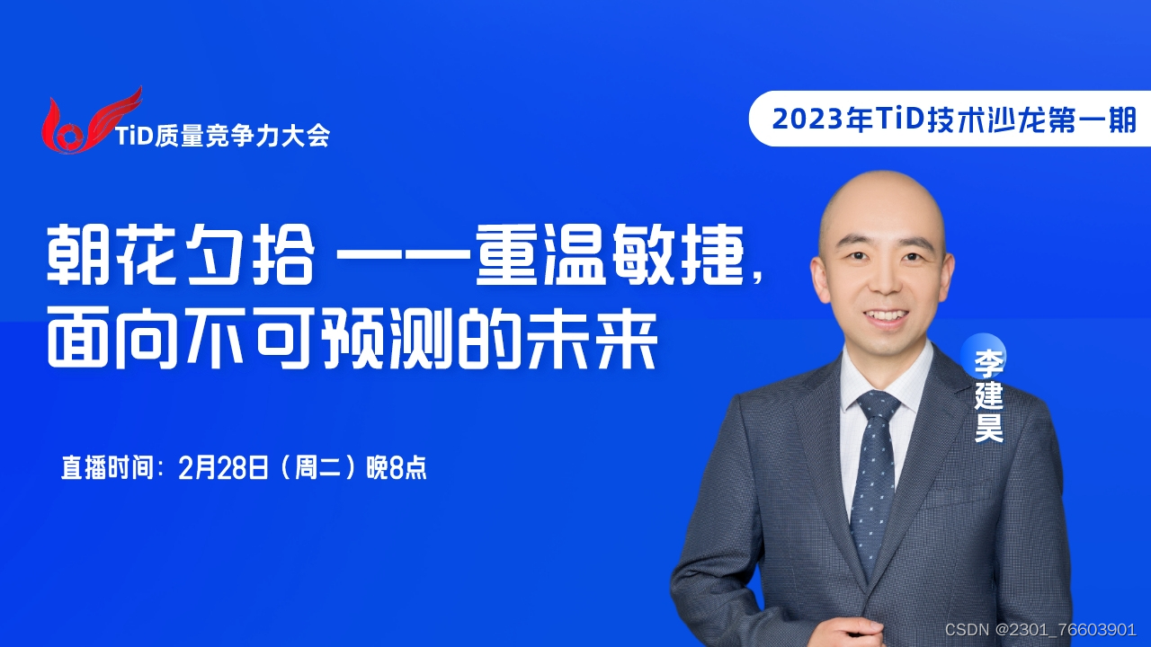 2月28日(周二)晚20点,本期TiD技术沙龙直播活动将邀请CAC中国敏捷教练企业联盟特邀专家、香港大学中国商学院客座讲师、中国敏捷开发领军人物李建昊老师做客直播间,就以上问题与大家进行探讨与分享,欢迎踊跃报名。