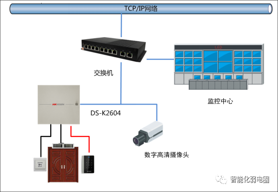 门禁系统与对讲系统的联动为并项式联动,这一联动方式主要是将门禁系统集成到楼宇对讲门口机中,实现刷卡进门的功能,二者的相互关联表现为纯硬件方面的连通。
