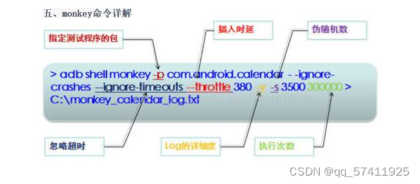 a)可以通过PC机CMD窗口中执行: adb shell monkey {+命令参数}来进行Monkey测试