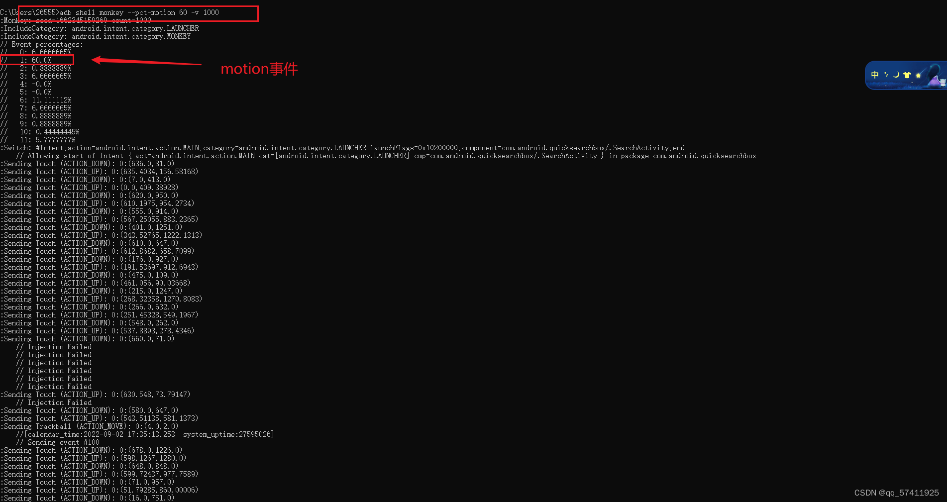 adb shell monkey --pct-motion 60 -v 1000