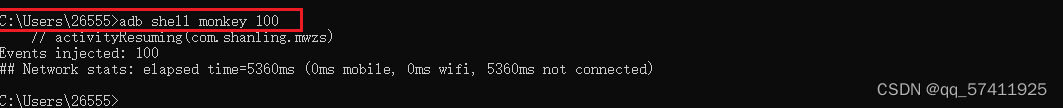 adb shell monkey 100 >路径