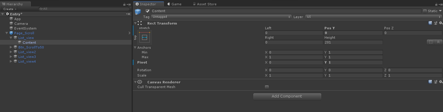 首先我们创建个ScrollRect,移除掉Content里面的布局组件。如下