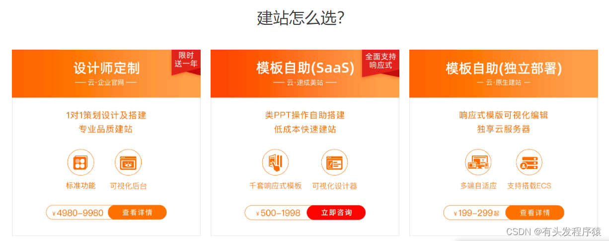 比如阿里云的建站产品主要分成三种