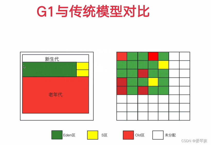 - 分代:跟其他垃圾收集器一样,G1把堆分成了年轻代和老年代,垃圾收集主要在年轻代,并且年轻代回收效率最高。偶尔也会在老年代进行回收。