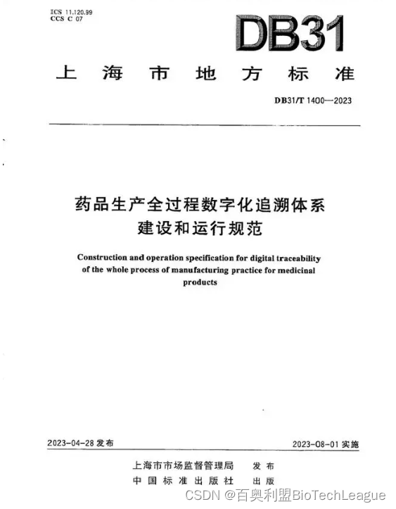 上海市监局近日发布的《药品生产全过程数字化追溯体系建设和运行规范》,于2023年8月01日起正式实施,百奥利盟®系统合规赋能生物医药数字化转型升级,提供药品生产全生命周期追溯解决方案。