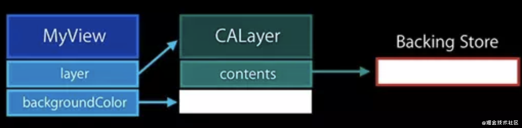 - 每个UIView内部都有一个CALayer在背后提供内容的绘制和显示,并且UIView的尺寸样式都由内部的Layer所提供.两者都有树状层级结构,layer内部有SubLayers,View内部有SubViews,但是Layer比View多了个AnchorPoint