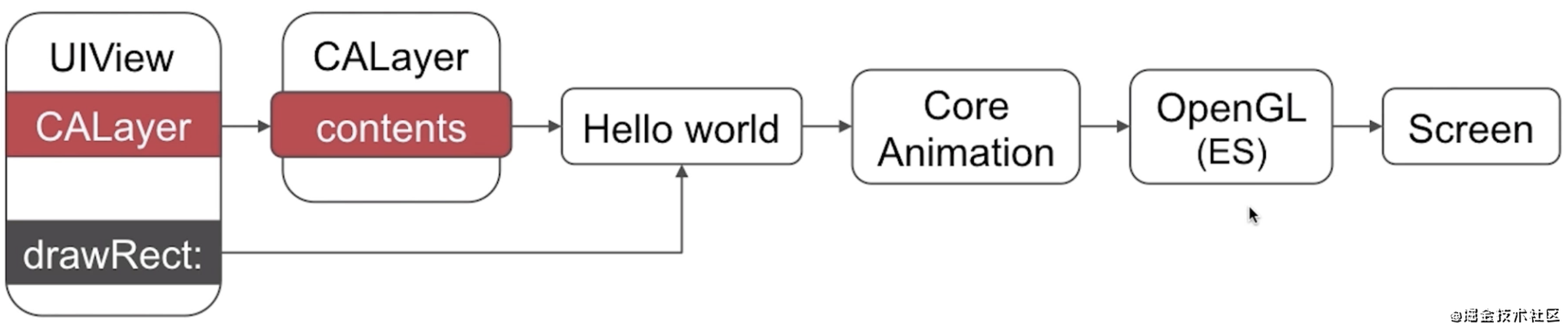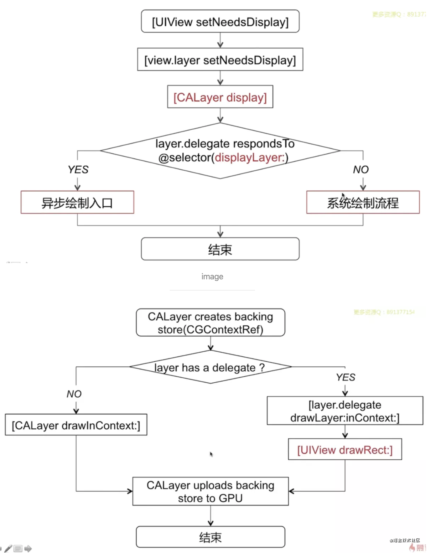 - 在View显示的时候,UIView作为Layer的CALayerDelegate,View的显示内容由内部的CALayer的display.