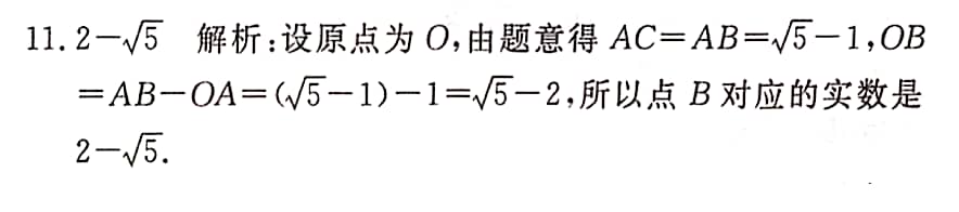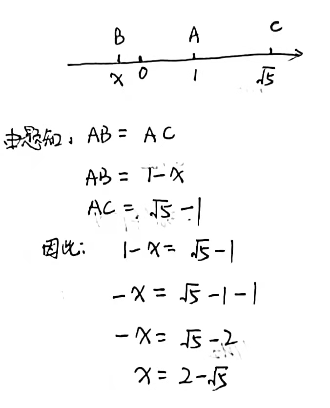如图,数轴上C, A两点对应的实数分别是 5 \sqrt {5} 5 和 1 1 1,点C与点B关于点A对称(即 A B = A C AB=AC AB=AC),则点B对应的实数为多少?